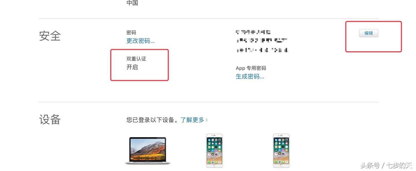 (8)在帐户信息界面找到“编辑”按钮,并且可以看到“双重认证”开启状态。如图