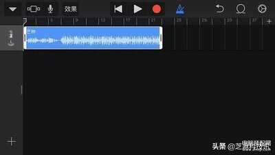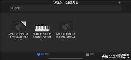 3、保存铃声到iPhone文件夹之后,打开库乐队APP,然后再依次点击左侧的“+”按钮 -> 麦克风图标 -> 左脚上角 三横图标,如下图所示。