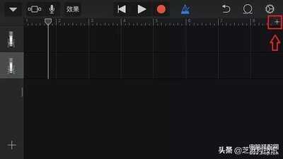 3、保存铃声到iPhone文件夹之后,打开库乐队APP,然后再依次点击左侧的“+”按钮 -> 麦克风图标 -> 左脚上角 三横图标,如下图所示。