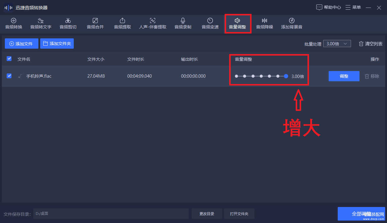 另外还有一个原因,如果你自定义铃声了,可能歌曲本身的声音就很小,我们可以用「迅捷音频转换器」,将铃声音量增大2倍、3倍,最后再设为铃声,声音一定很大了。