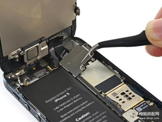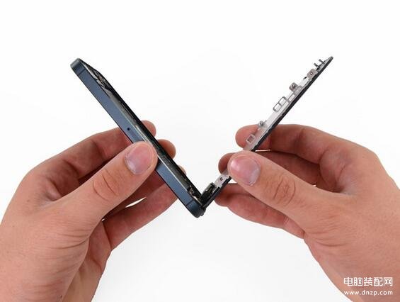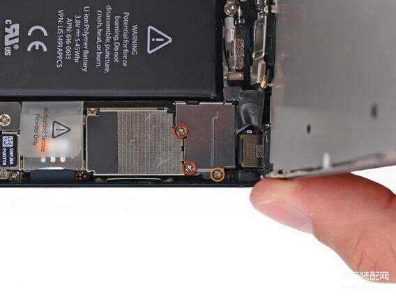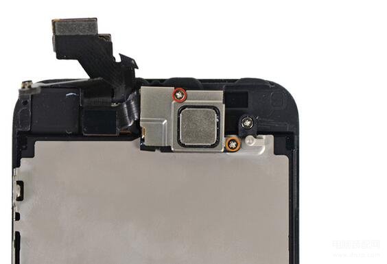 接着上面拆下屏幕说,取下屏可以看到顶部的扬声器部件被金属支架固定,这时用螺丝刀拆掉即可继续拆解