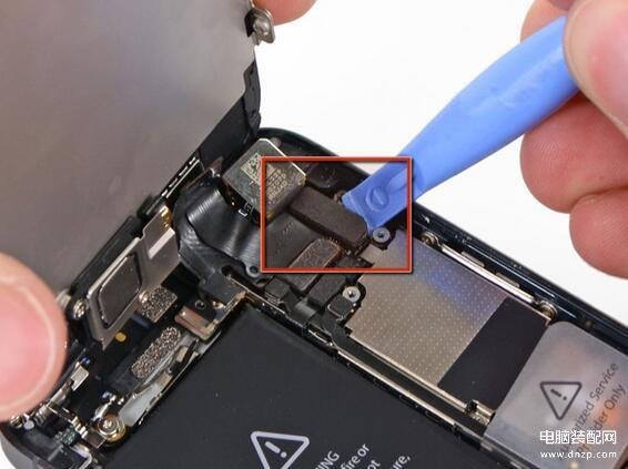 卸掉固定听筒扬声器的螺丝后用手取下这个金属支架