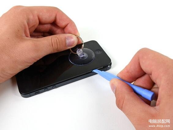 然后用吸盘辅助拆解屏幕。需要注意的是屏幕边缘周围有黏胶固定,首先对其进行加热软化。可以用大瓦吹风机,或者使用风枪进行辅助。