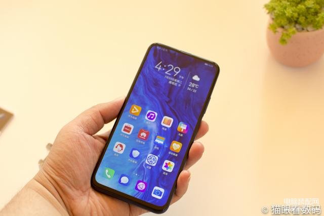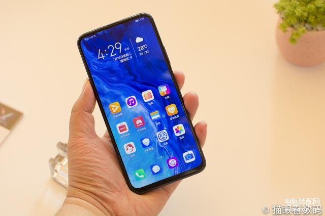 这次荣耀9X系列最大的特点就是采用了升降全面屏的设计,正面是一块完整的6.59英寸LTPS屏幕,没有刘海、水滴和挖孔,屏幕完完整整,颜值很高。