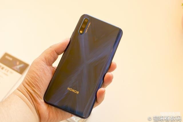 荣耀9X系列的机身后盖使用了一种X型律动菱钻纹理,从不同的角度看去会有不同的光线效果,十分的酷炫。正中的一个大大的“X”也提高了产品的辨识度。