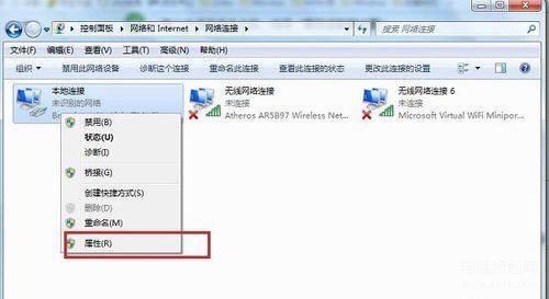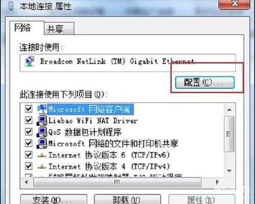 3、找到【本地连接】,右键选择【属性】,然后点【配置】;