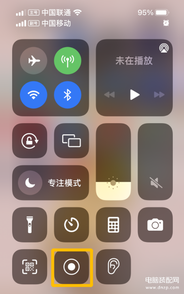1、首先在屏幕右上角下滑,打开控制面板,找到屏幕录制图标