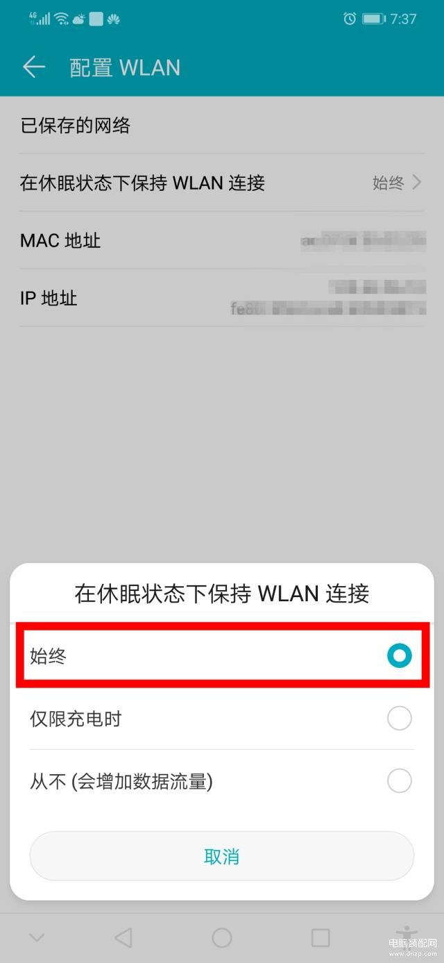 花部长想,这位粉粉应该是设置了“在休眠状态下不保持WLAN连接”。只要你在【设置】—【无线和网络】—【WLAN】—【配置】—【在休眠状态下保持WLAN连接】,设置为【始终】即可解决。