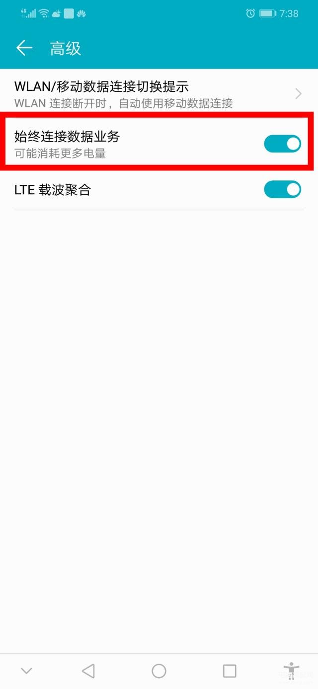 另外,你还可以在【设置】—【无线和网络】—【移动网络】—【高级】,开启【始终连接数据业务】,这样就可以一直保持手机网络的正常运行啦。