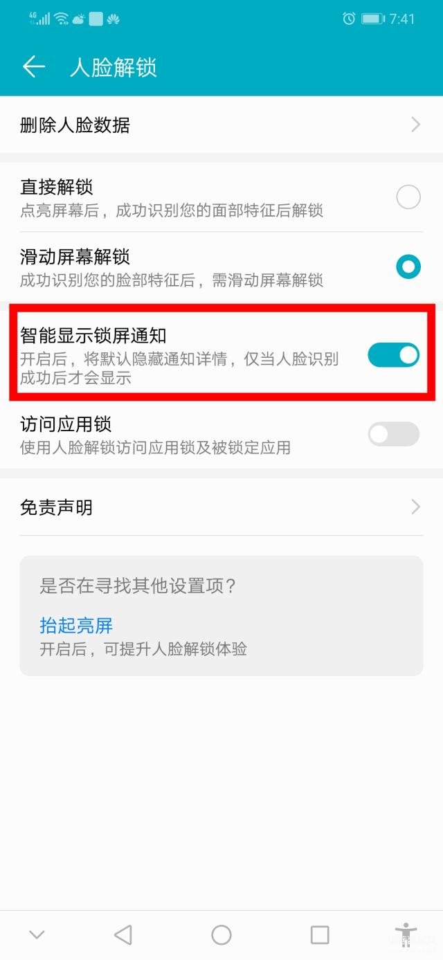 第二,开启【人脸解锁】,并开启【智能显示锁屏通知】,即可做到别人看手机时只显示隐藏,自己看手机时才能看到隐藏的内容。