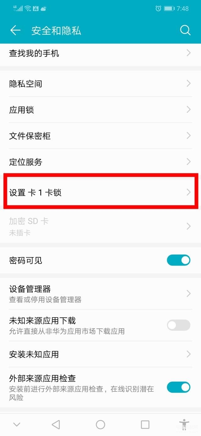 另外,如果你想更改PIN码的话,可以通过【设置】—【安全和隐私】—【更多安全设置】—【设置卡1/2卡锁】找到【锁定SIM卡】,在输入原来的PIN码后方可进行修改。