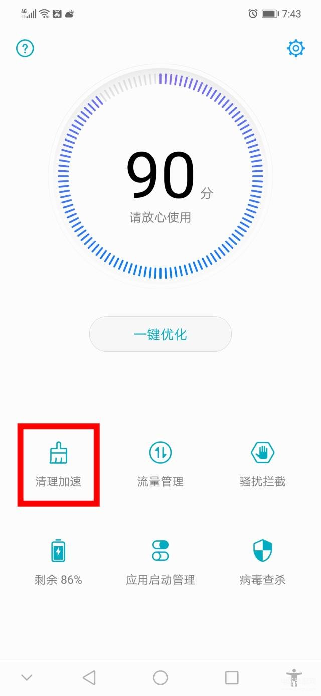手机经过了长时间的使用,多多少少都会有各种各样的文件在占用我们的存储空间。这时,你可以在桌面找到【手机管家】APP,打开【清理加速】可以看到手机里各种文件的占用情况,然后把不需要和不常用的清理即可。