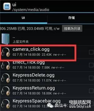 2、打开【system】-【media】-【audio】-【ui】文件夹,找到”camera-click.ogg“文件 (它就是快门声音);