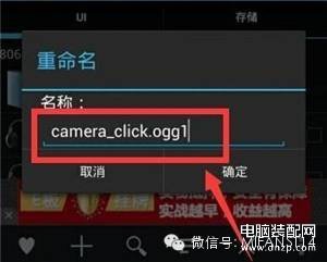 3、把该文件重命名为”camera-click.ogg1“,再点击”确定“”