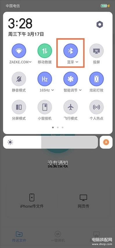 1、从屏幕顶部下拉控制中心,点击【蓝牙】即可。