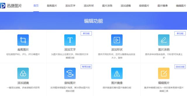 打开网页后,上面展示的这些就是它的全部功能了,一共有8个,用来在线处理图片足够用了。这个网站也是免费的,点击对应的功能选框。将图片上传后就能在网页上进行操作了,不用安装、也不花一分钱~