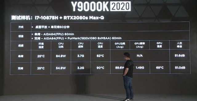 官方在发布会现场放上了拯救者Y7000/R7000两款机型的单/双烤60分钟成绩: