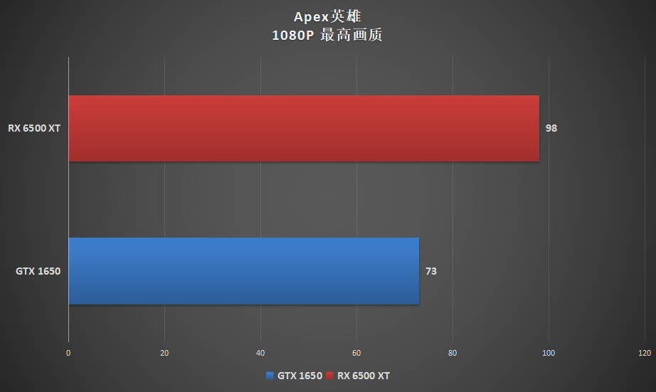 目前仍然非常热门的FPS游戏,由EA推测出的大逃杀类游戏,甚至在去年玩家人数已经超过一亿。而在实测中,RX 6500 XT选择1080P分辨率,最高画质下,可以达到平均98帧,相比GTX 1650要强34%。而且作为FPS游戏,帧率非常重要,如果适当降低画质,可以体验到更流畅的画面帧率。