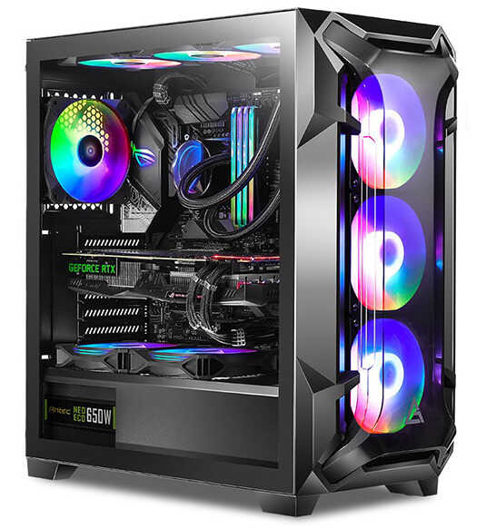 对于喜欢玩灯的用户来说,一定不要错过安钛克驱逐者DF 600FLUX。产品除了有全景侧透钢化玻璃面板之外,前面板也是由透明材质打造而成,配上标配的5个风扇中3个是RGB风扇,省去了自购RGB风扇的预算,不额外花钱就能呈现出炫酷的灯光效果。与此同时机箱自带灯效控制器,可以与个主板厂商的灯光同步技术进行联动;也可以自行将风扇、灯带等设备连接到控制器上,通过前置按键,实现7种幻彩模式的切换,玩法相当丰富。