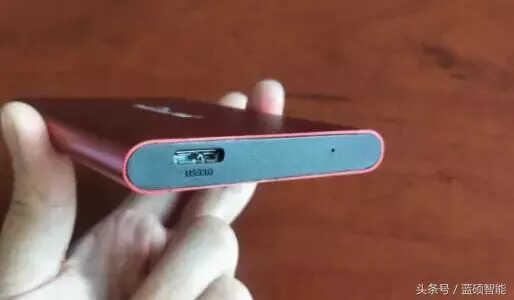看看侧面,一个USB 3.0接口,用于连接数据线,从下图的厚度来看,T8要更薄一些,实际厚度也只比手机厚上一丢丢。重量方面,T8只有200g左右,更加轻巧和纤薄了。