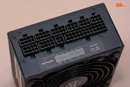 电源采用全模组接口设计,其中24pin主供电对应的模组接口是24+4pin的组合接口;8pin模组接口则对应显卡的PCI-E供电接口与主板的CPU供电接口,共计有5个;6pin模组接口则用于扩展SATA供电接口与D型4pin供电接口,共计有3个。