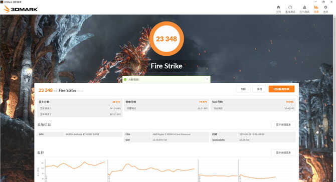 Fire Strike场景反应DX11的游戏性能,锐龙5 3600X成绩为19897分,相对酷睿i7-9700K还要高一些。