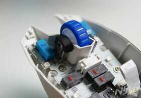 鼠标内采用的元器件来自各个品牌,左右微动是达尔优定制的蓝壳蓝点微动,侧键和DPI按键是环诺的红点微动,而编码器则是来自TTC。