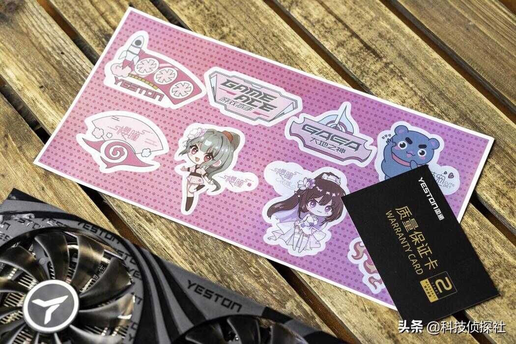配件方面,和其他盈通显卡一样,附赠了一张贴纸和2年的保修卡。