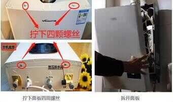 出现这种情况,首先断电断水,打开燃气热水器的面板,用螺丝刀取下底部两颗螺丝,顶部两颗螺丝拆下面板。