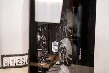 ▼因为这款机箱有两个360冷排位,这我们就要充分利用一下,装一把酷冷至尊的SF360R模组扇,辅助机箱内部风道的建立,装好之后的效果,看起来还是很不错的