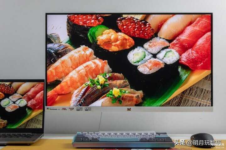 细节方面,显示器的超窄边框非常惊艳,如果不点亮屏幕,几乎看不到有白边设计。另外,屏幕的黑边也非常的窄,屏占比非常高。整个画面显示的颜色饱满,真实、细腻的质感呈现在面前,看到这样的图片就会让人非常有食欲。