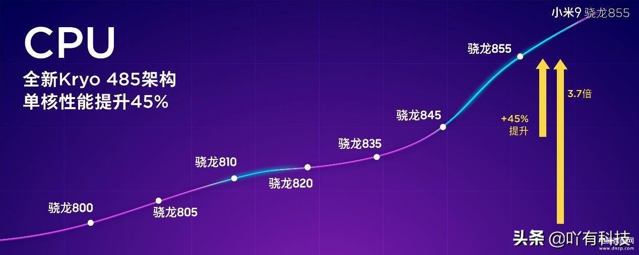 骁龙855处理器,先进的7nm工艺制程,在更小的尺寸内汇聚更澎湃的性能。并且较上代骁龙845处理器各个方面都有着跨越式的提升,而小米9正是搭载了此款处理器,让小米9又快又稳。