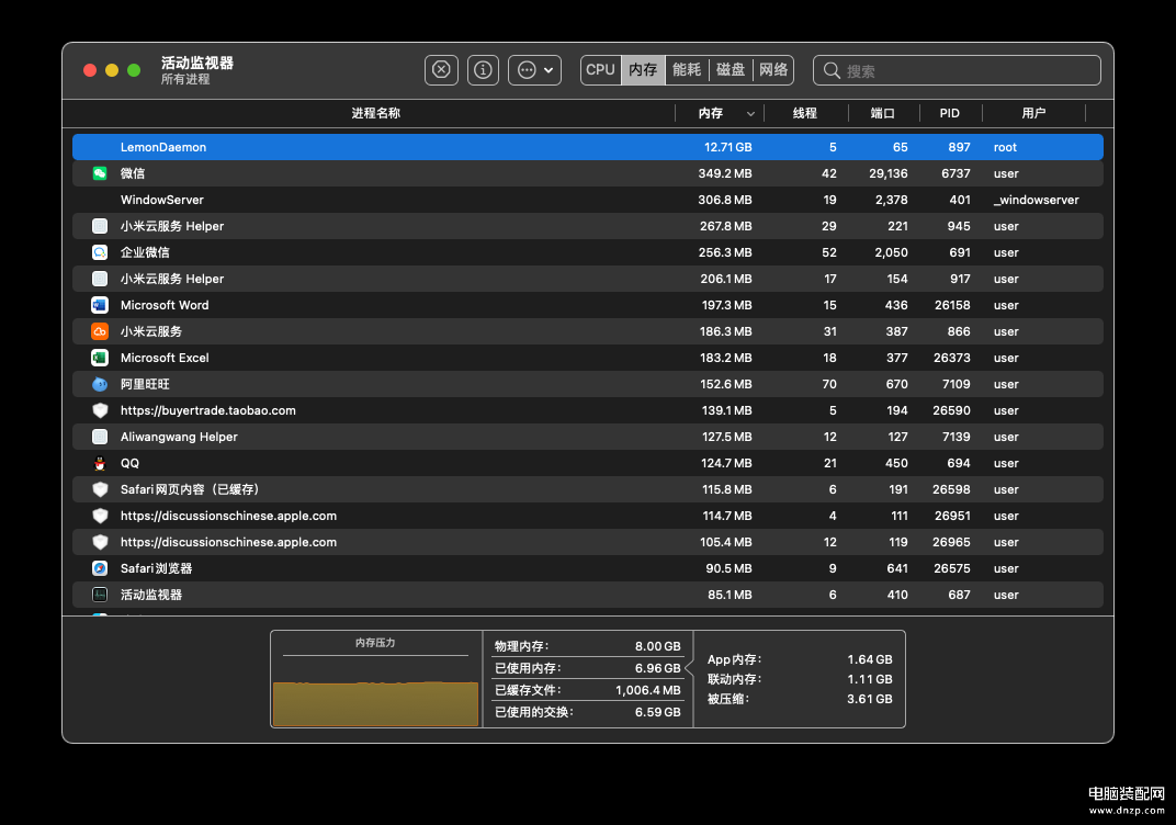 3.活动监视器能显示您的所有进程以及每个进程占用的内存量;