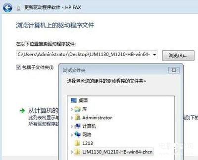 5、点击“浏览”选择驱动程序所在目录(也就是刚才解压出来的那个文件夹)并点击确定。