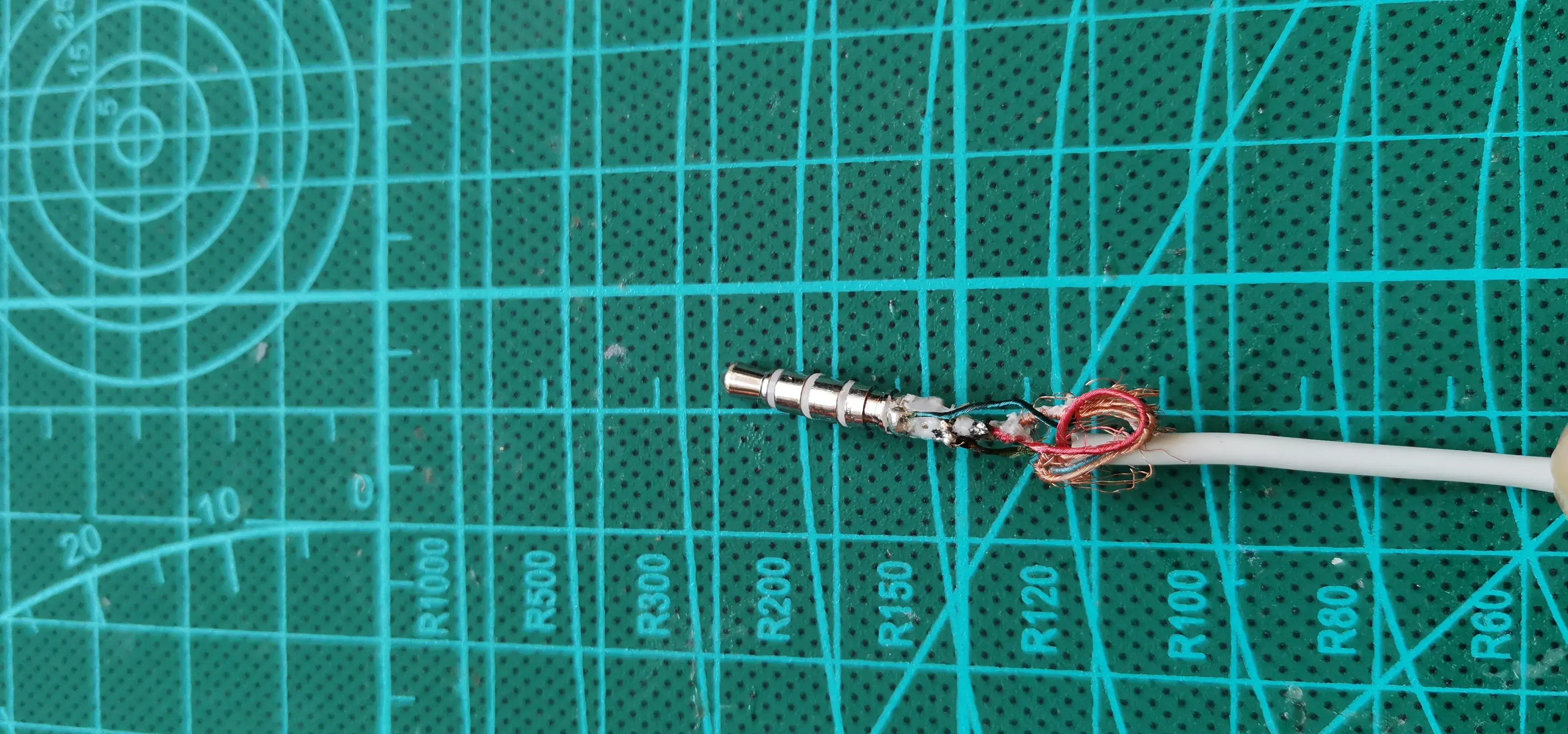 重申一下,红绿蓝三条线,外面是带色的铜线(实际就是漆包线,漆的颜色不同),中间有个芯,是白色纤维,用来抗拉的,它的存在,很不容易吃锡。