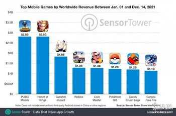 《王者荣耀》这次与《PUBG mobile》(合并和平精英)基本上并列第一,年收入均为28亿美元,按汇率换算为178亿人民币。可见天美和光子的这两款游戏属实是腾讯游戏的招牌,给腾讯带来了不少的收益。米哈游人气游戏《原神》排名第三,作为一款上线刚刚一年的游戏,取得这个成绩也是非常棒的了。