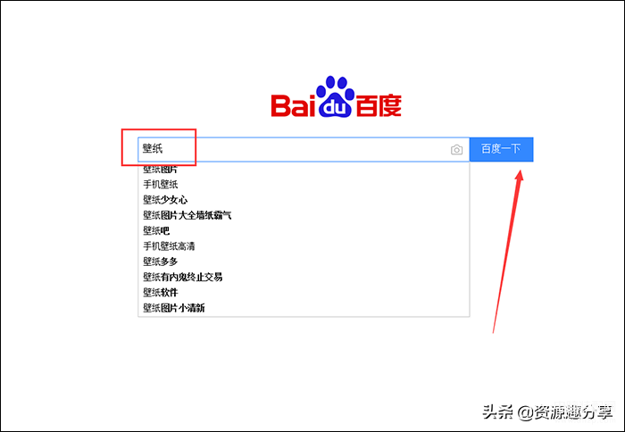 1、利用浏览器打开百度,直接在搜索栏中输入“壁纸”,然后点击搜索按钮就可以了。你也搜索菜单栏中壁纸的相关长尾词,在“壁纸”的搜索结果界面中,你可以点击“壁纸分来”选择你喜欢的壁纸类型,你也可以在“壁纸筛选”中设置壁纸的尺寸和色系。