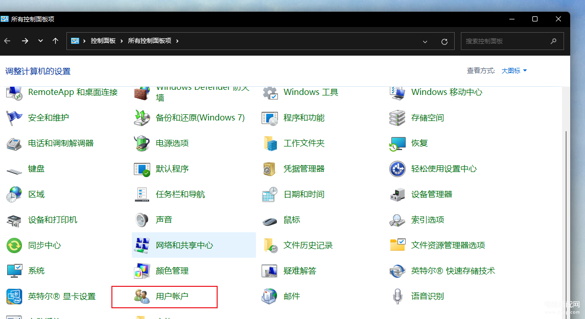 2、第二种方法:打开控制面板选择用户账户