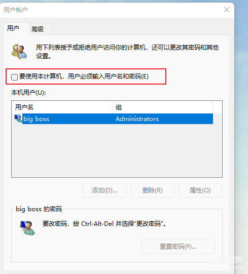 3、取消勾选要使用本计算机,用户必须输入用户命和密码