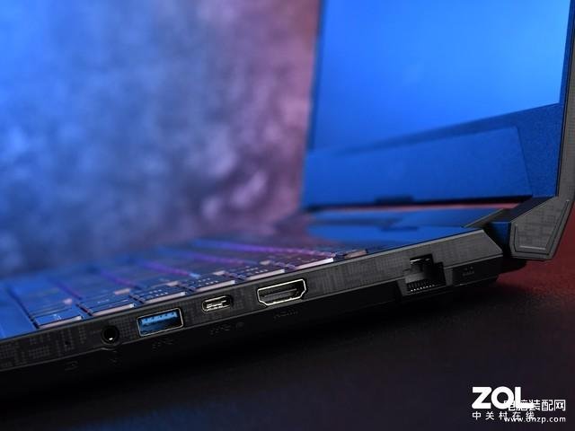星影15的接口主要分布在机身左右两侧,右侧配有3.5mm音频插孔,1个Type-A USB 3.2 Gen1,1个 Type-C USB 3.2 Gen1(DP),1个支持8K@60Hz和4K@120Hz输出的HDMI接口,以及标准的RJ-45网口。