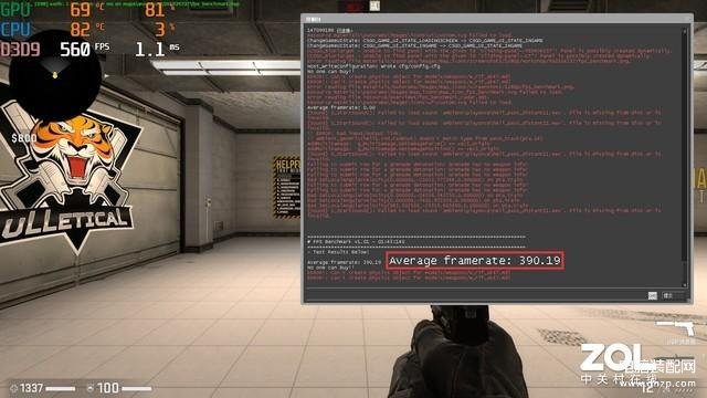 在机器默认的1080P最高画质下,游戏的平均运行帧数来到了390.19fps,运行电竞类游戏没有任何问题。