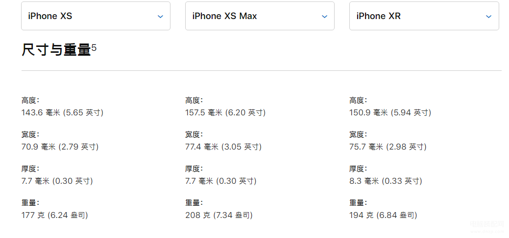 由于iPhone X和iPhone XS使用的是相同的屏幕,所以在屏幕方面就只针对iPhone XS、iPhone XS Max和iPhone XR三款机型进行一些对比,以下是苹果官网给出的三款机型的屏幕参数。