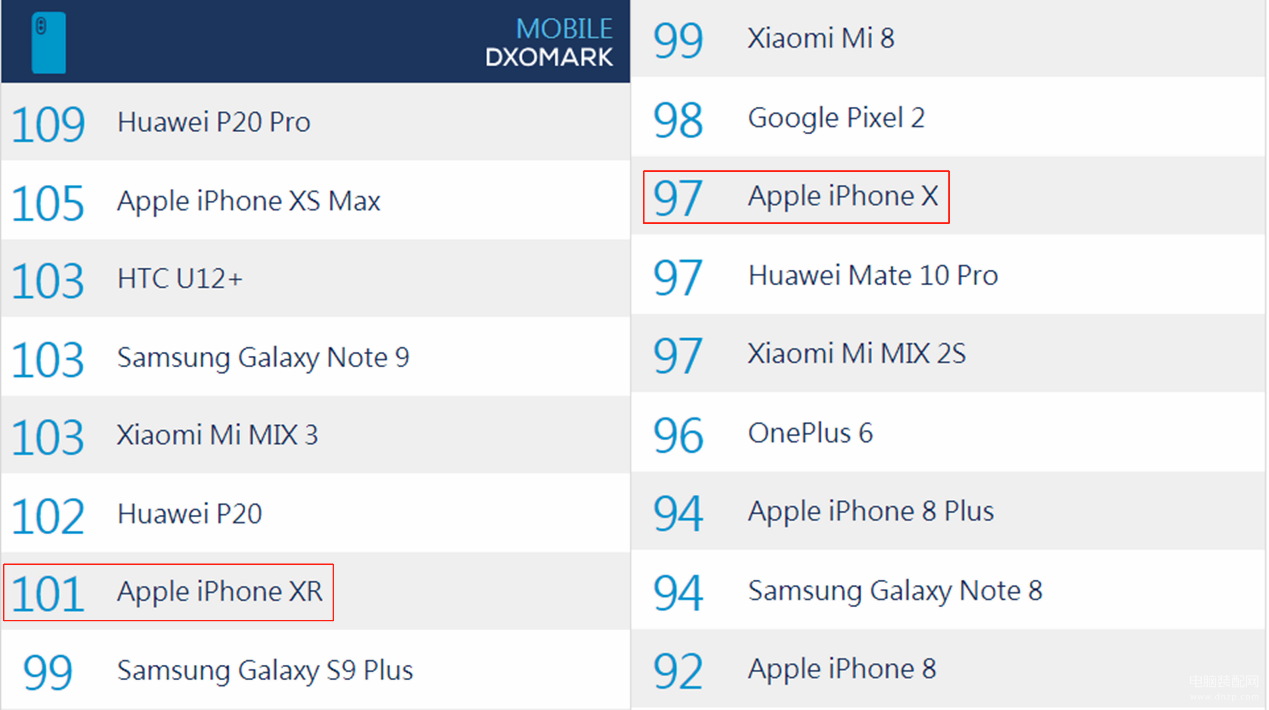 而且最新的DXOMark Mobile榜单显示,iPhone XR以101分成为目前为止得分最高的单摄手机,超越了97分的iPhone X。