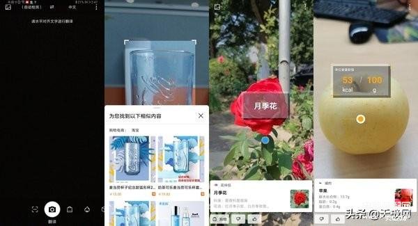 华为畅享10 Plus也拥有智慧视觉功能,可以拍摄图片进行翻译、购物、检测卡路里、识物等。