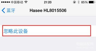 这时,页面下方将会弹出一个菜单栏,可以选择取消或者直接忽略该设备,我们点击忽略该设备,这样就可以删除掉之前连接过的设备信息,然后再次关闭iPhone蓝牙功能,再次打开进行蓝牙设备的搜索,看是否已经恢复正常;如果依然还不能够解决问题的话,那么只能考虑一下升级iOS系统到最新版本了
