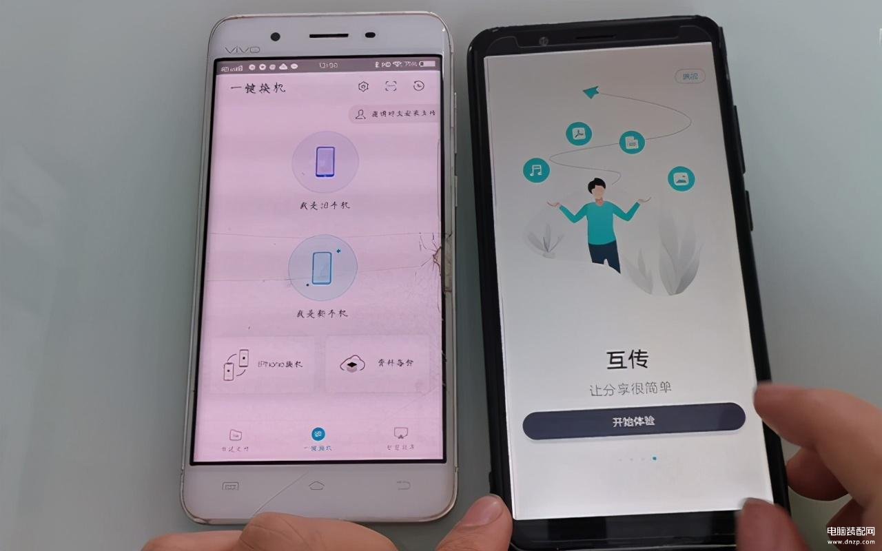 1、首先我们需要在新手机和旧手机上,准备一个互传,同时打开这个工具,可以看到界面上显示,新手机与旧手机的按钮。
