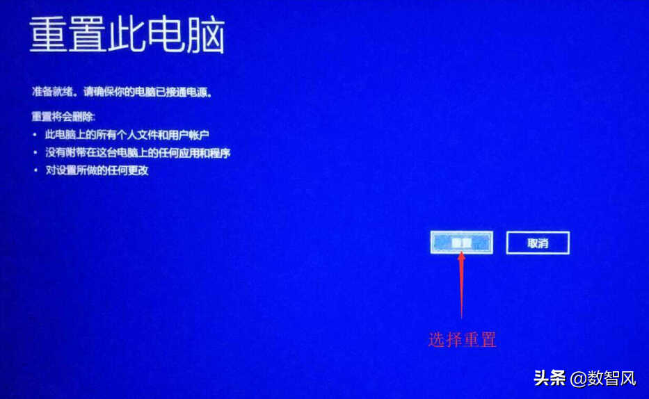 重装的方法一般人都懂,这里不多啰嗦。重置的方法,主流win10、win11都是在系统启动过程中,长按电源键重启3次就可以进入修复模式。在修复模式中选择重置电脑即可。