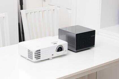 在散热方面,优派采用左进风,右排风设计,而极米则是底进风,后排风,吊装两者没有什么区别,如果放在茶几上使用,后排风有吹腿的可能,侧排风则没有这一问题。两者在噪音上也没有区别,灯泡机同样很安静。