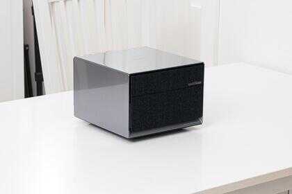 来看看两者外观的对比吧,体型方面一个扁平,一个方正,但看主机极米的体积要更小巧一点点。颜色方面,一黑一白各有特色。