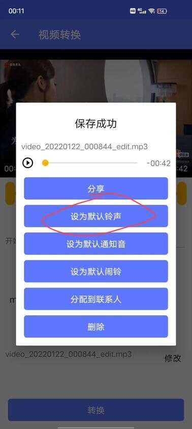 转换完之后选择设为默认铃声,